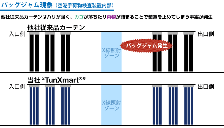 X線手荷物検査機内部で荷物が詰まるバッグジャム現象のフィールドテスト